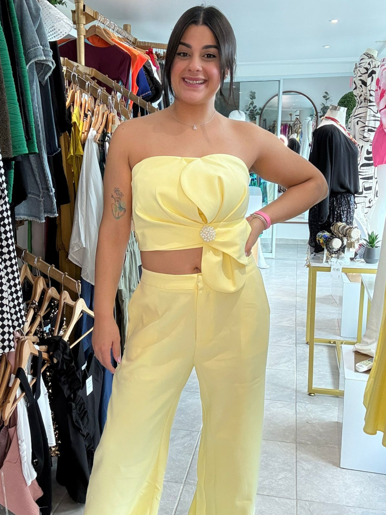 Unconditionally loved and our defining bestseller: The 'Milk & Honey Yellow Set' offers unmatched sophistication in its stunning bandeau top and effortless fit. A true signature piece.
